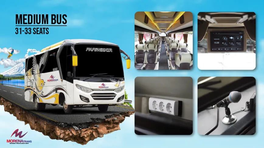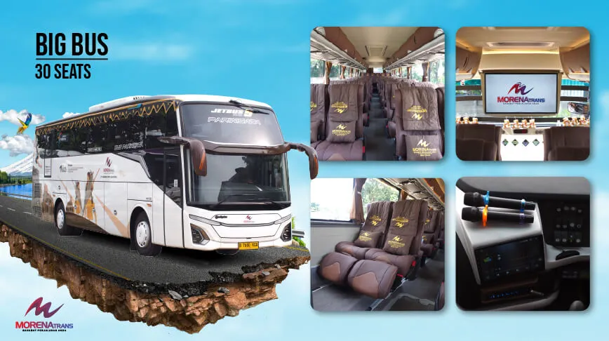 bus 30 seat - 50 seat dengan fasilitas memadai, kami membawa anda melewati rute-rute indah dan kenyamanan