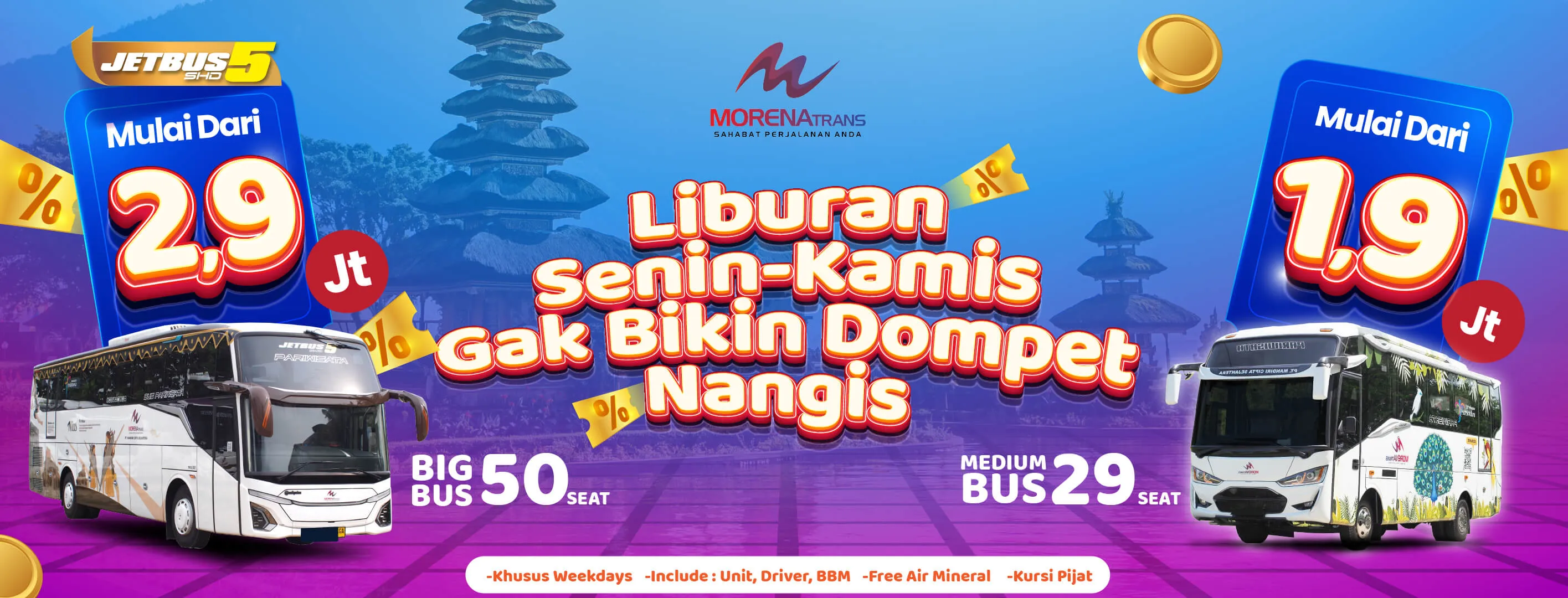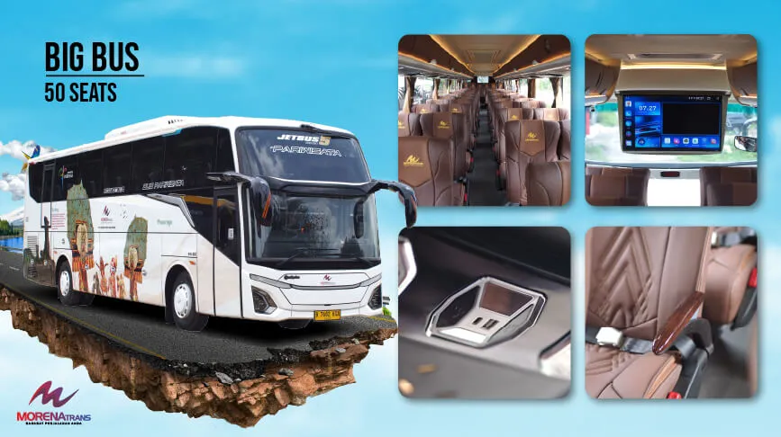 bus 30 seat - 50 seat dengan fasilitas memadai, kami membawa anda melewati rute-rute indah dan kenyamanan